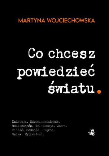 "Corinne swój pierwszy ultramaraton przez pustynię pokonała w wieku pięćdziesięciu dwóch lat, choć nigdy wcześniej nie biegała. Larysa uciekła przed wojną w Ukrainie z siódemką dzieci, dla których jest mamą zastępczą. W Polsce buduje ich nowe życie. Choć Jennifer urodziła się bez nóg, została wybitną gimnastyczką. Ella pierwszy raz nurkowała z rekinami jako pięciolatka, teraz jest ich obrończynią i rzeczniczką. Morena walczy w Salwadorze o kobiety, które odsiadują wyroki więzienia za poronienie. Darlan jest osobą interpłciową, cudem przeżyła prześladowania, dziś jest pastorką kościoła w Kenii. Marbella była gotowa na wszystko, żeby dać swoim dzieciom przyszłość. Pod koniec życia znalazła się w przytułku dla bezdomnych pracownic seksualnych w Meksyku. To jej dedykuję tę książkę. "Co chcesz powiedzieć światu" to portrety dziesięciu niezwykłych kobiet, które spotkałam na różnych krańcach świata i w Polsce. Zainspirowały mnie, pokazały drogę, dodały otuchy. Spisałam ich historie, w których głośno mówią o tym, co najważniejsze: o walce o godność i szczęście własne, i drugiego człowieka, o odpowiedzialności za innych i za naszą planetę, o bezwarunkowej miłości, która daje siłę, i determinacji, która pozwala osiągnąć niemożliwe. Ta książka to opowieść o odważnych kobietach, ale też o mnie samej, bo bez nich nie byłabym tym, kim jestem".
