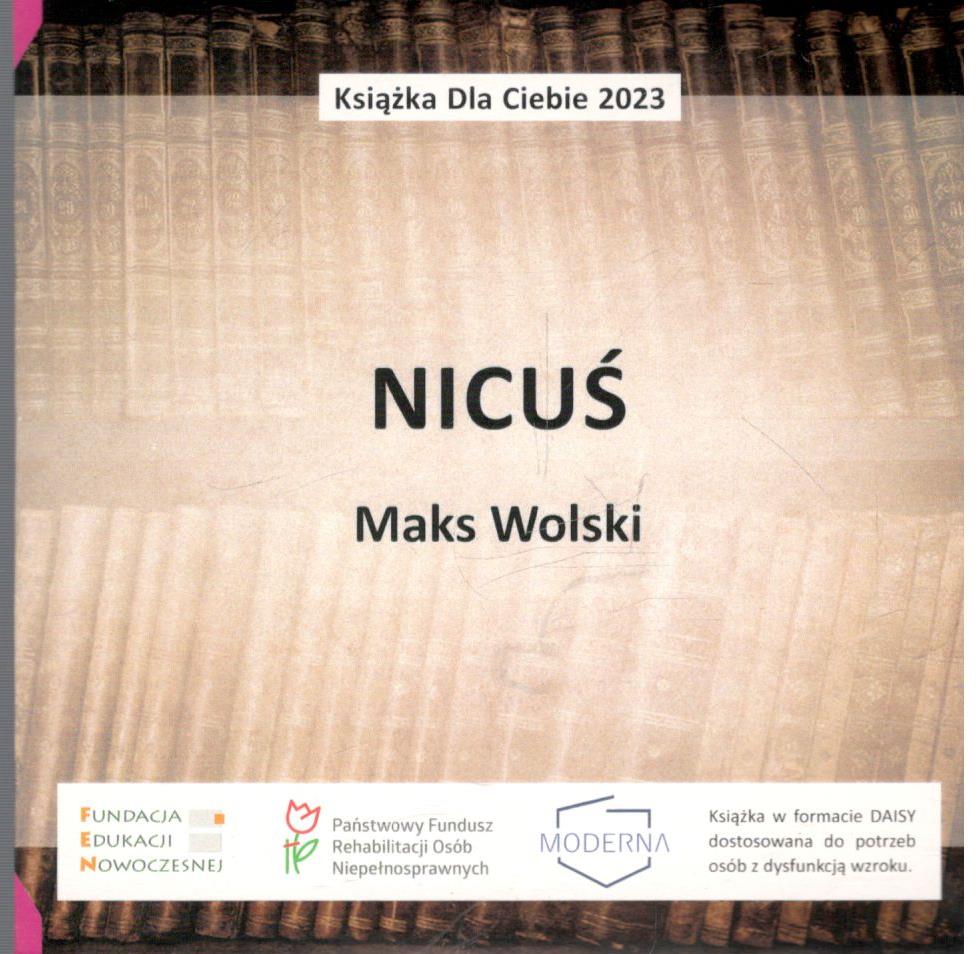 Nicuś [audiobook] / Maks Wolski. - Warszawa : Fundacja Edukacji Nowoczesnej ; [Jelenia Góra] : Fundacja Moderna, [2024]. - 1 płyta audio (CD) : zapis cyfrowy, stereo ; 12 cm.