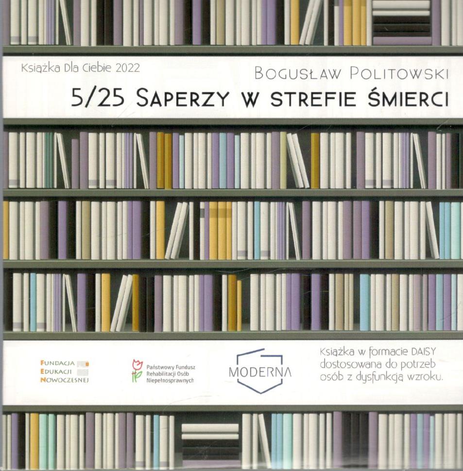 5/25 : saperzy w strefie śmierci [audiobook] / Bogusław Politowski. - Warszawa : Fundacja Edukacji Nowoczesnej ; [Jelenia Góra] : Fundacja Moderna, [2023]. - 1 płyta audio (CD) : zapis cyfrowy, stereo ; 12 cm.