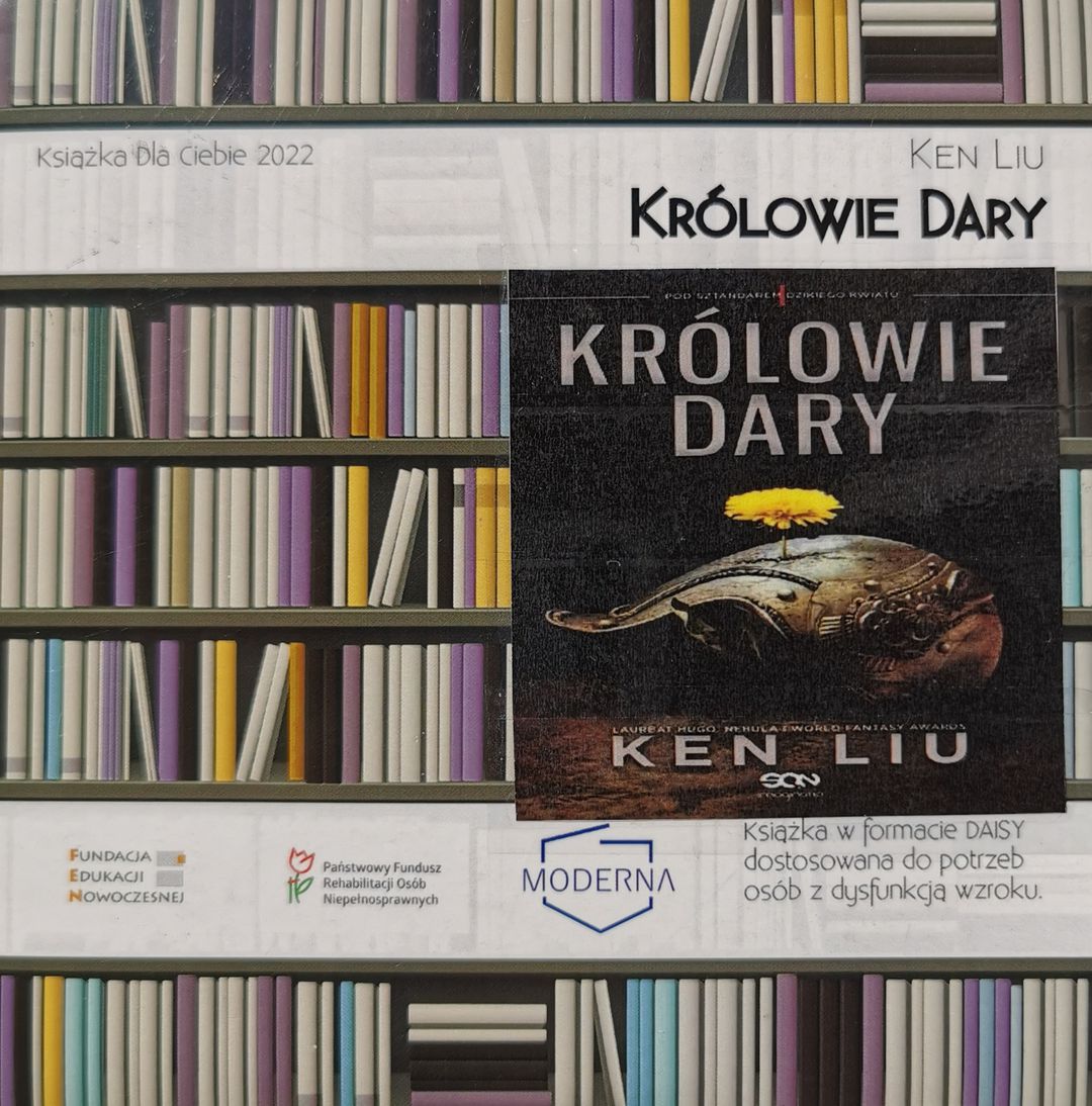 Królowie Dary [audiobook] / Ken Liu. - Warszawa : Fundacja Edukacji Nowoczesnej ; [Jelenia Góra] : Fundacja Moderna, [2022]. - 1 płyta audio (CD) : zapis cyfrowy, stereo. ; 12 cm.