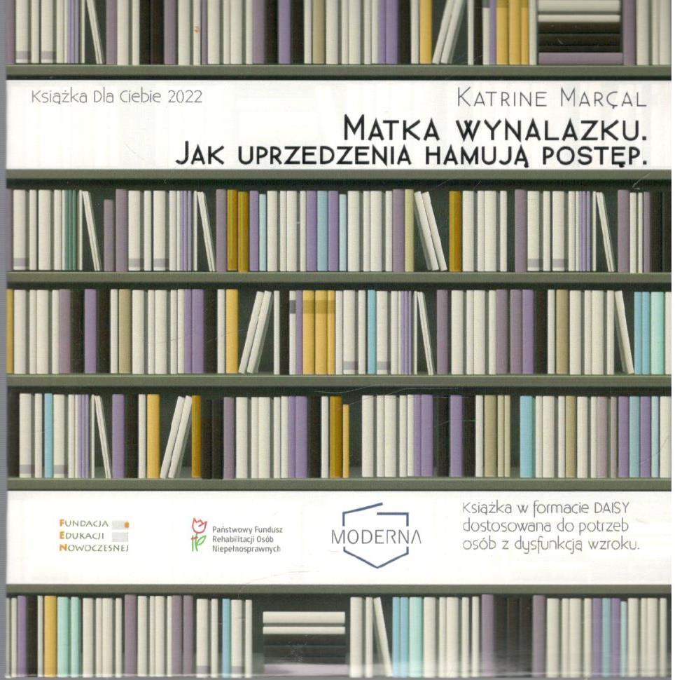 Matka wynalazku : jak uprzedzenia hamują postęp [audiobook] / Katrine Marcal. - Warszawa : Fundacja Edukacji Nowoczesnej ; [Jelenia Góra] : Fundacja Moderna, [2022]. - 1 płyta audio (CD) : zapis cyfrowy, stereo. ; 12 cm.