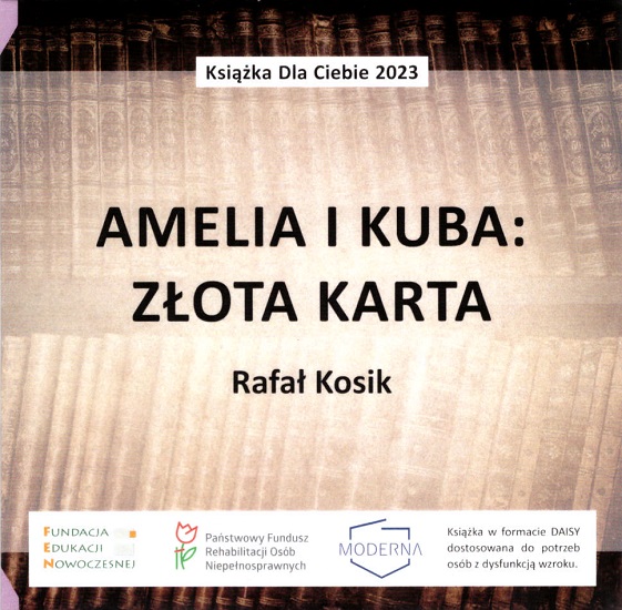 Amelia i Kuba : Złota karta [audiobook] / Rafał Kosik. - Warszawa : Fundacja Edukacji Nowoczesnej ; [Jelenia Góra] : Fundacja Moderna, 2023. - 1 płyta audio (CD) : zapis cyfrowy, stereo ; 12 cm.
