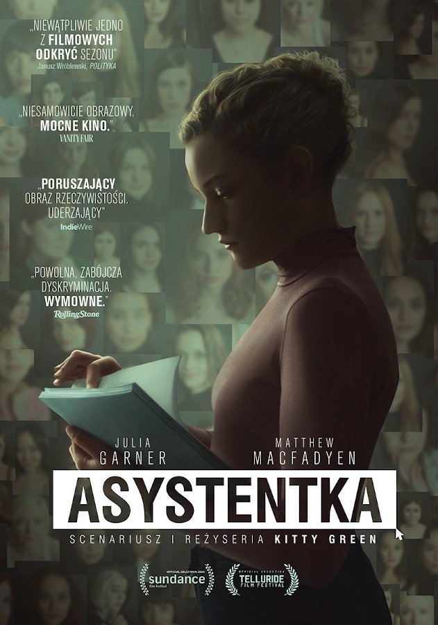 Jane (nagrodzona nagrodą Emmy za rolę w serialu „Ozark” Julia Garner) niedawno ukończyła studia i marzy o karierze producentki filmowej. Kiedy trafia do pracy jako asystentka potentata branży rozrywkowej, jest w siódmym niebie. Nie wie jeszcze, że pod pozorami pracy, zamiast realizacji marzenia, czeka ją droga do zatracenia. Nie musisz znać historii hollywoodzkiego skandalu Harveya Weinsteina, ani podstaw odważnego ruchu #MeToo, żeby na swojej szyi poczuć zaciskające się palce człowieka, który wykorzystuje swoją pozycję, aby pozbawić cię marzeń. „Asystentka” to historia skandalu, który może wydarzyć się wszędzie.