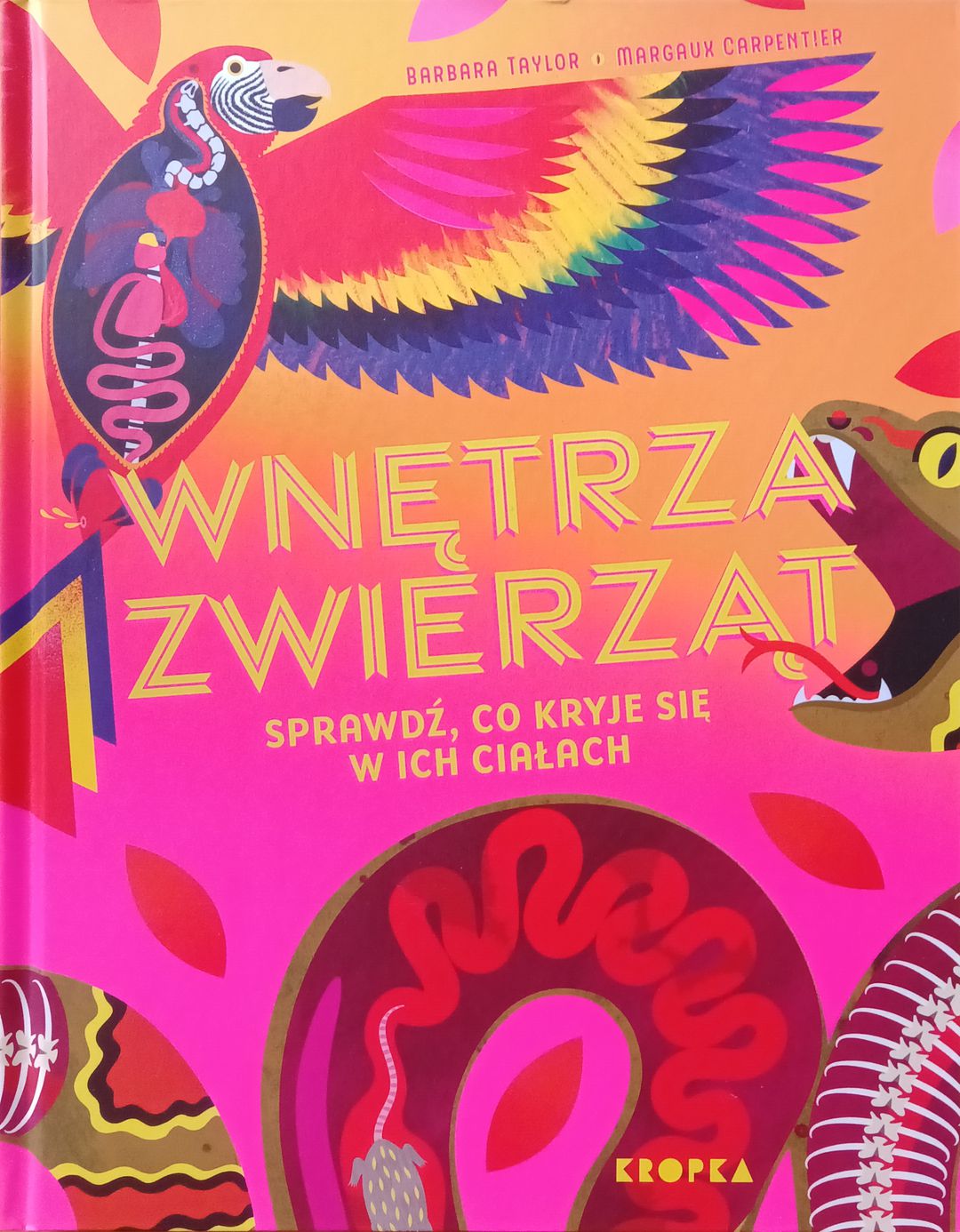 Czy wiesz, że serce żaby przestaje bić, gdy zapada ona w zimowe odrętwienie? Ząb trzonowy słonia waży więcej od cegły, a mózg strusia jest mniejszy od jego gałki ocznej? W tej książce znajdziesz 21 rysunków, dzięki którym zajrzysz do wnętrza ciał różnych zwierząt i dowiesz się, gdzie i jakie narządy się w nich znajdują. Niektóre, jak mózg, serce i płuca, występują u niemal wszystkich zwierząt. Inne narządy są tak wyspecjalizowane, że niektórym zwierzętom umożliwiają przetrwanie w ich środowisku naturalnym. Każdemu rysunkowi towarzyszą krótkie, ale pełne faktów notki dotyczące budowy i funkcji szkieletu, mięśni i innych narządów wewnętrznych. Wertuj kolejne strony poświęcone ssakom, ptakom, gadom, płazom, rybom i stawonogom, by dowiedzieć się, co dzieje się w ciałach tych stworzeń. Ta książka to doskonały prezent dla czytelników chcących poznać tajemnice zwierząt! [nota wydawcy].