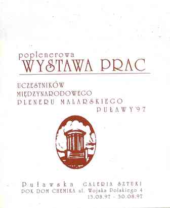 Wystawa : Poplenerowa wystawa prac uczestników Międzynarodowego Pleneru Malarskiego Puławy'97, Puławy, 13.08.97-30.08.97