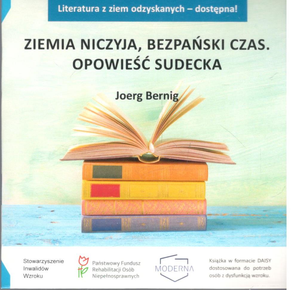 Ziemia niczyja, bezpański czas : opowieść sudecka [audiobook] / Joerg Berrnig. - [Jelenia Góra] : Stowarzyszenie Inwalidów Wzroku : Moderna, [2023]. - 1 płyta audio (CD) : zapis cyfrowy, stereo ; 12 cm.