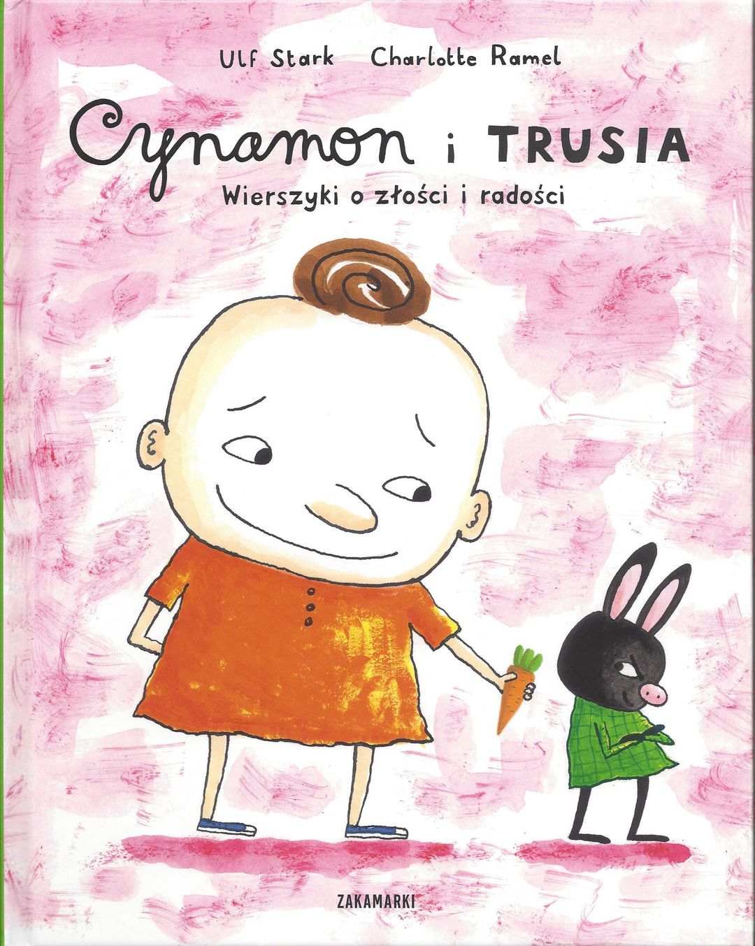 Trusia jest zła! Potknęła się o kamień i boli ją palec. Całe szczęście obok jest jej przyjaciel Cynamon, który współczuje i pociesza! Ale co to? Cynamon rozmawia z wiewiórką, daje jej orzech... Trusia jest zazdrosna! Cynamon zaczyna się martwić - gdzie zniknęła Trusia? Trusi wstyd, że obraziła się na Cynamona. Zaczyna za nim tęsknić. Czy się odnajdą? Czy się pogodzą? Ach, jaka by to była ulga i radość! Cynamon i Trusia odkrywają i nazywają uczucia - te gwałtowne i buzujące na powierzchni oraz te kryjące się gdzieś głęboko. Zgrabne i nieoczywiste wiersze Ulfa Starka oraz wyraziste i zabawne ilustracje Charlotte Ramel tworzą niepowtarzalny klimat książek o Cynamonie i Trusi. (Nota wydawcy).