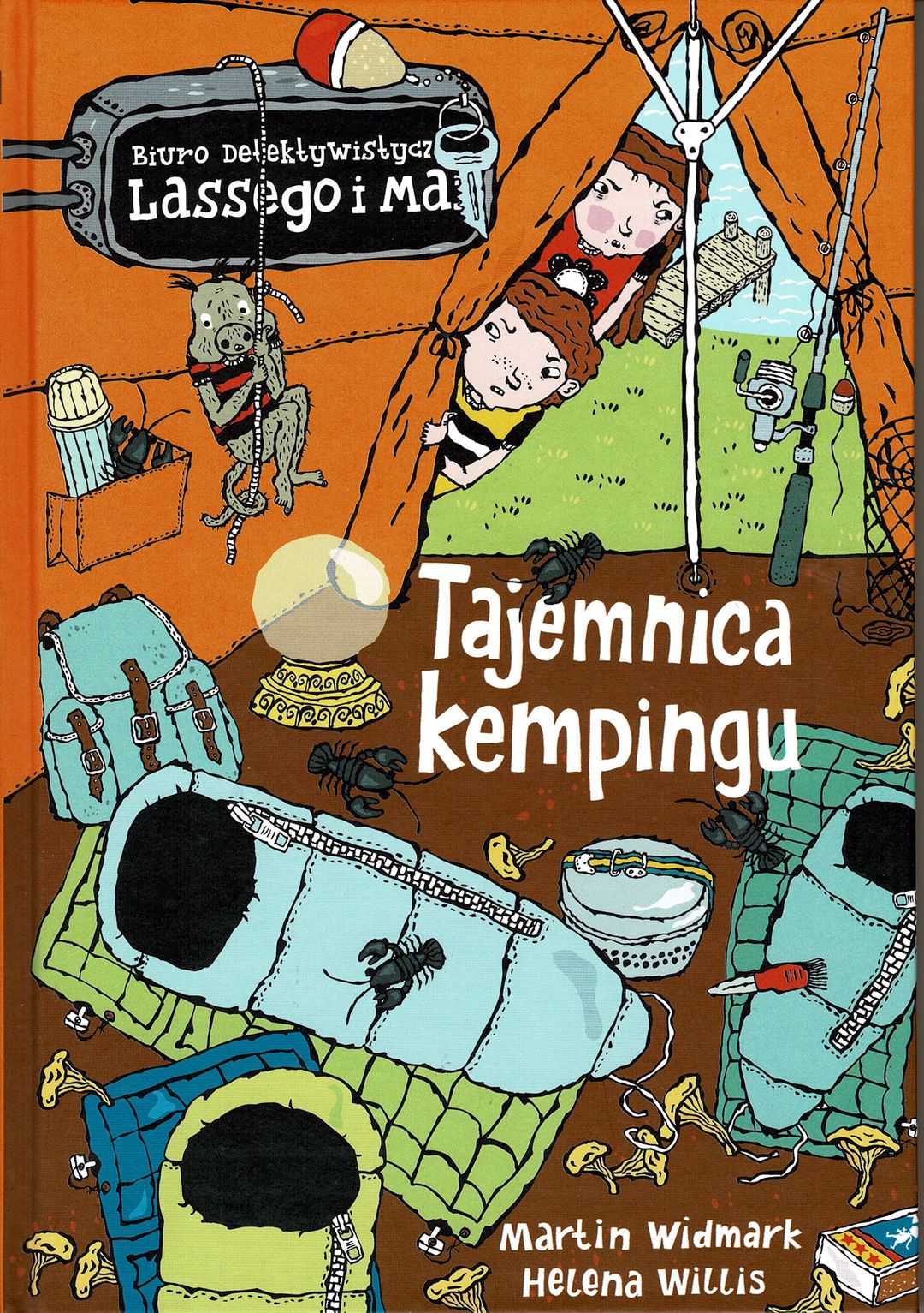 Lasse, Maja i Miranda, korzystając z ostatnich dni wakacji, rozbijają namiot na kempingu nad jeziorem. Panuje tu przyjemna, leniwa atmosfera. Wkrótce jednak spokój zostaje zburzony serią drobnych kradzieży i coraz bardziej tajemniczym zachowaniem pozostałych mieszkańców kempingu. Gdy w końcu znika cały połów raków, Lasse i Maja rozumieją, że dla nich wakacje się skończyły. Kolejne tytuły serii „Biuro Detektywistyczne Lassego i Mai” od kilku lat wybierane są książką roku przez szwedzkie Jury Dziecięce, czyli niemal 50 000 głosujących dzieci, a tym samym nie schodzą w Szwecji z list bestsellerów. Akcja książek rozgrywa się w małym szwedzkim miasteczku Valleby i jego okolicach. Główni bohaterowie, Lasse i Maja, chodzą do tej samej klasy i wspólnie prowadzą małe biuro detektywistyczne.