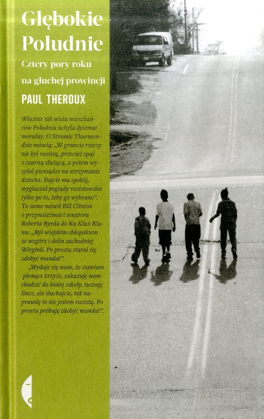 "Głębokie Południe" Paula Theroux to świat, w którym „historia żyje i ma się dobrze” – stosunki między czarnymi a białymi są wciąż napięte, pełne wzajemnych żalów i poczucia krzywdy: wielu zresztą wciąż pamięta czasy segregacji rasowej, a niektórzy twierdzą, że wcale się nie skończyły. Sercem wspólnoty jest tu lokalny kościół, ulubioną niedzielną rozrywką jarmark z bronią, którego uczestnicy zachowują się tak, jakby wojna secesyjna zakończyła się wczoraj. A wokół ciągną się pola bawełny, powoli wypieranej przez inne uprawy. Lecz choć Południe regularnie nawiedzają huragany, choć jest biedne, zacofane i popada w ruinę, równocześnie fascynuje muzyką, kuchnią, pogodą ducha i humorem. Theroux oburza się i pała gniewem, patrząc na nędzę i nierówności, ale podziwia wytrwałość i odwagę działaczy społecznych i zwykłych ludzi doświadczonych przez los. Jego opowieść ma też bohaterów drugoplanowych, znanych i mniej znanych kronikarzy Południa: Williama Faulknera, Mary Ward Brown, Marka Twaina, Carson McCullers, Tennessee Williamsa, którzy tak jak on próbowali zrozumieć i opisać fenomen tego świata.