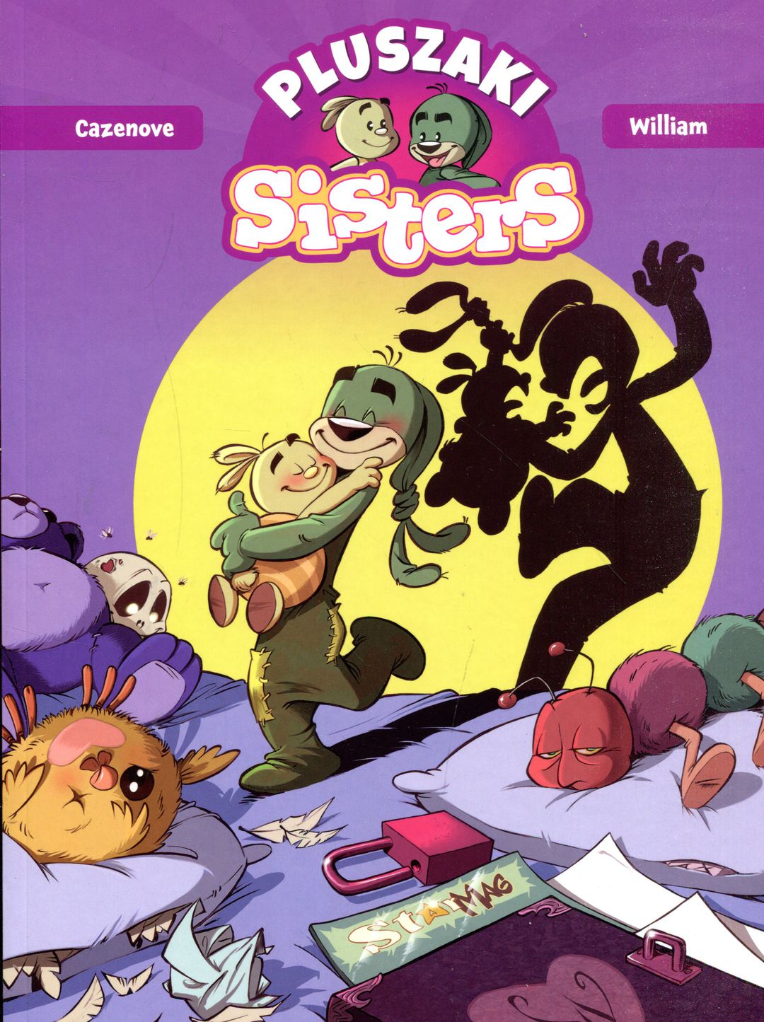Album dla miłośników opowieści o dwóch wiecznie kłócących się siostrach, Wendy i Marine. Tym razem głównymi bohaterami są ich ulubione pluszaki. Wszyscy znamy zwariowane sisters, ale niewiele wiemy o tajemnym życiu ich przytulanek. Czas poznać zabawki, które szaleją, gdy nikogo nie ma w domu! Mięciuś i Długouszek rozpoczynają śledztwo w bardzo ważnej sprawie: muszą ustalić, dlaczego ostatniej nocy Marine miała koszmary. Czeka ich wiele zabawnych przygód, ale czy zdołają znaleźć winnego? Autorami cyklu są scenarzysta Christophe Cazenove (współtwórca niemal czterdziestu serii humorystycznych dla dzieci i dorosłych, w tym „Sisters”, „Mali bogowie”, „Kasia i jej kot” czy „Zoo wymarłych zwierząt”) oraz rysownik William Maury, który oprócz „Sisters” ilustruje inną opowieść Cazenove’a – „Zombiaczek” [opis wydawcy].