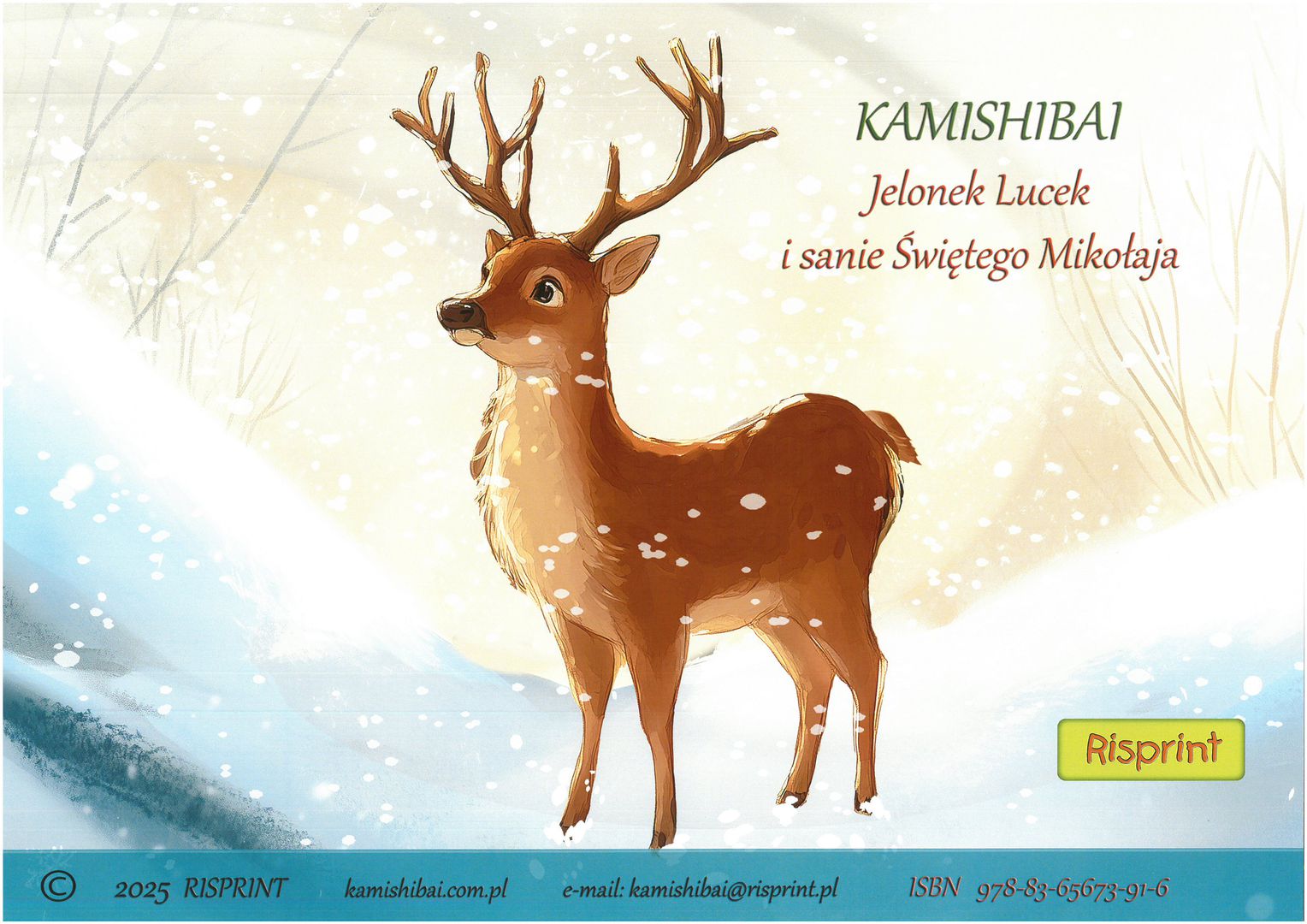 Jelonek Lucek i sanie Świętego Mikołaja / Beata Gabrat. - [Płock] : Risprint, copyright 2025. - 1 teka (12 kart luzem) : ilustracje ; 31x43 cm.