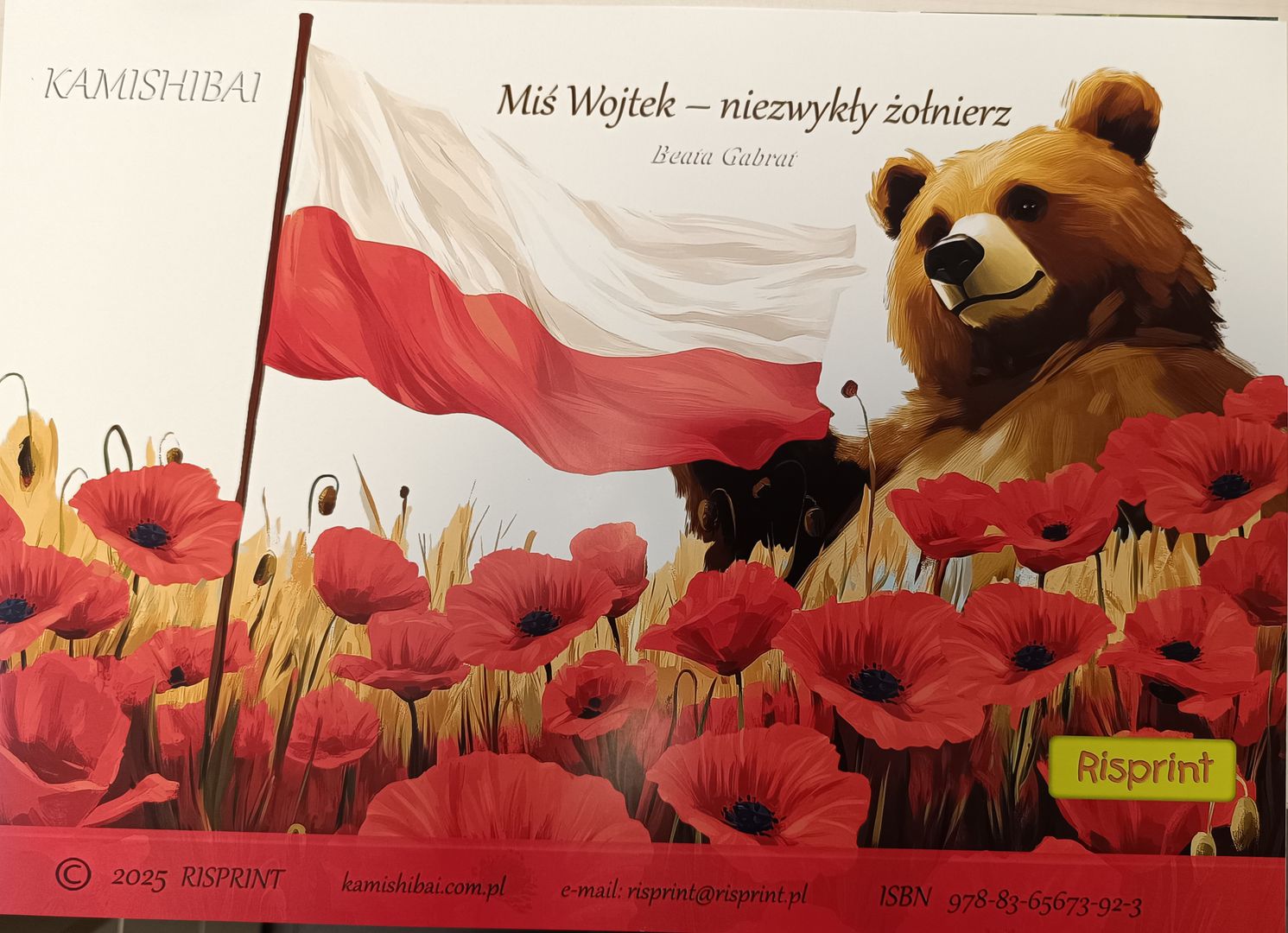Miś Wojtek - niezwykły żołnierz / Beata Gabrat. - [Płock] : Risprint, copyright 2025. - Teka (12 kart luzem) : ilustracje ; 31x42 cm.